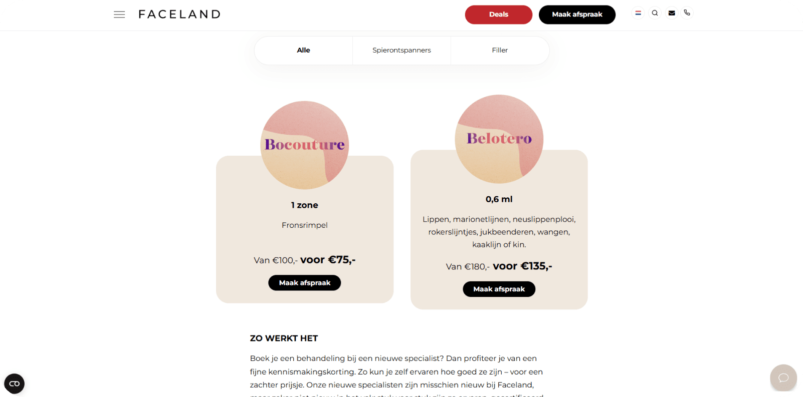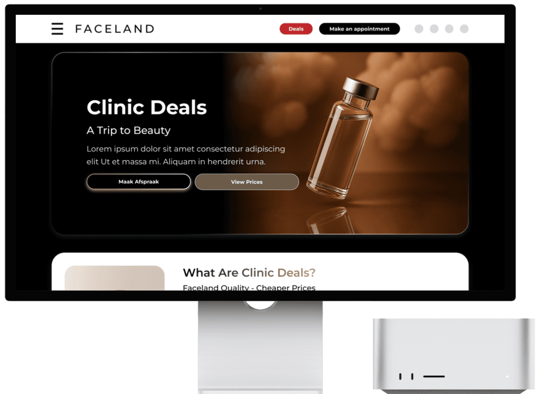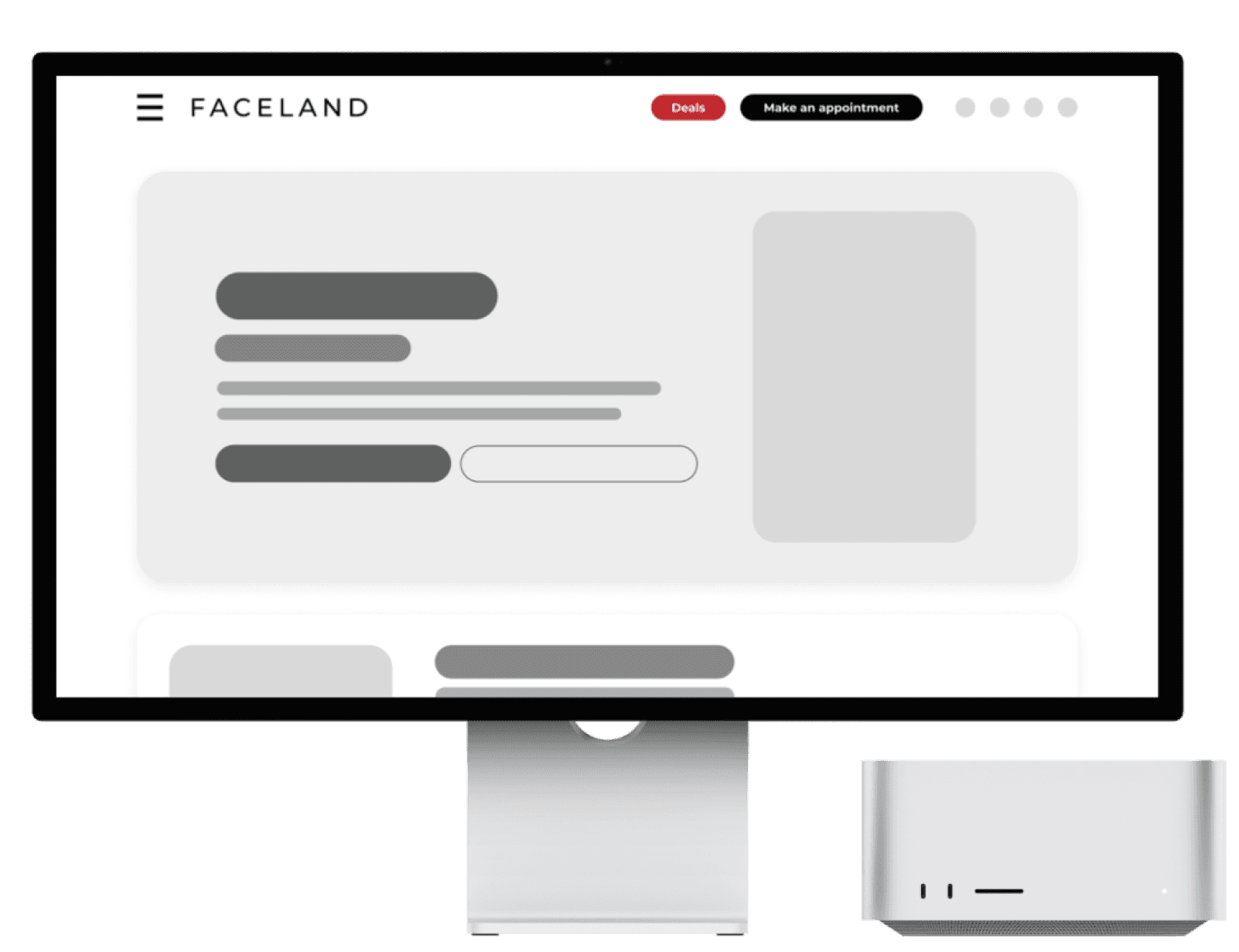 The introduction suffered from poor visual hierarchy and high cognitive load due to dense, centered text. Lacking clear typographic distinction or a prominent CTA, the value proposition was difficult to scan, forcing users to dig for relevant information. This layout felt disconnected from Faceland’s premium medical status, presenting more as a generic information page than a high-converting entry point for a luxury service.