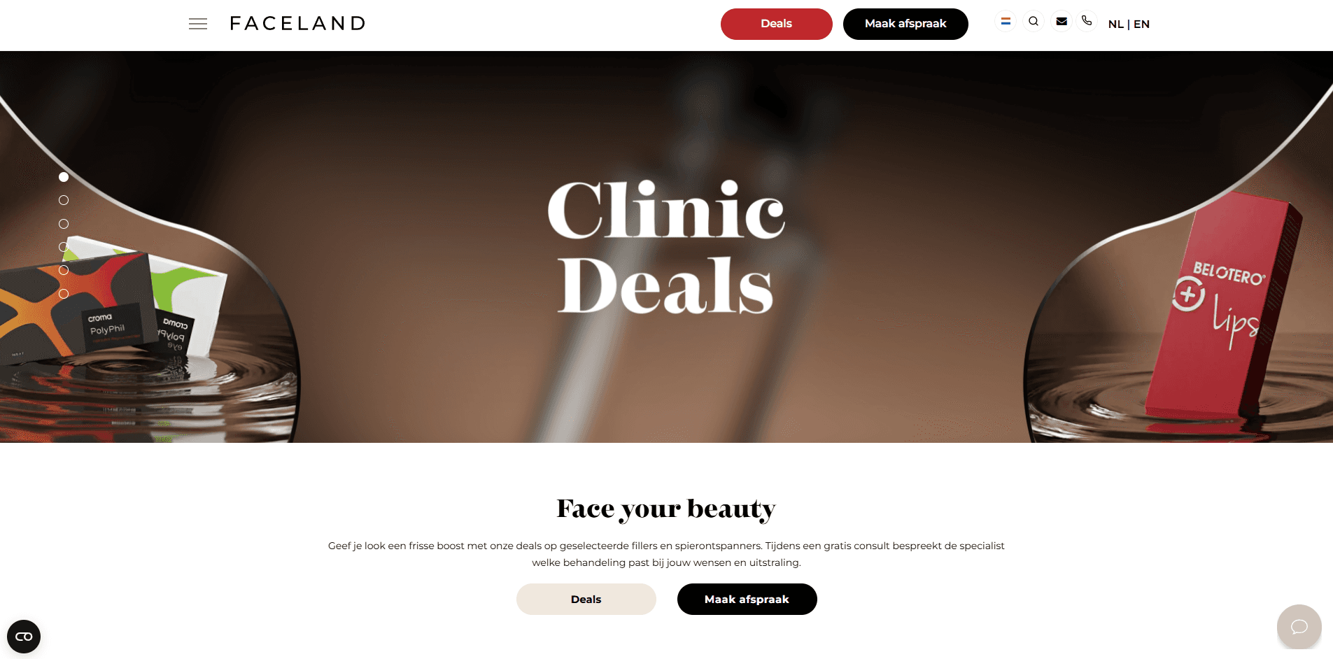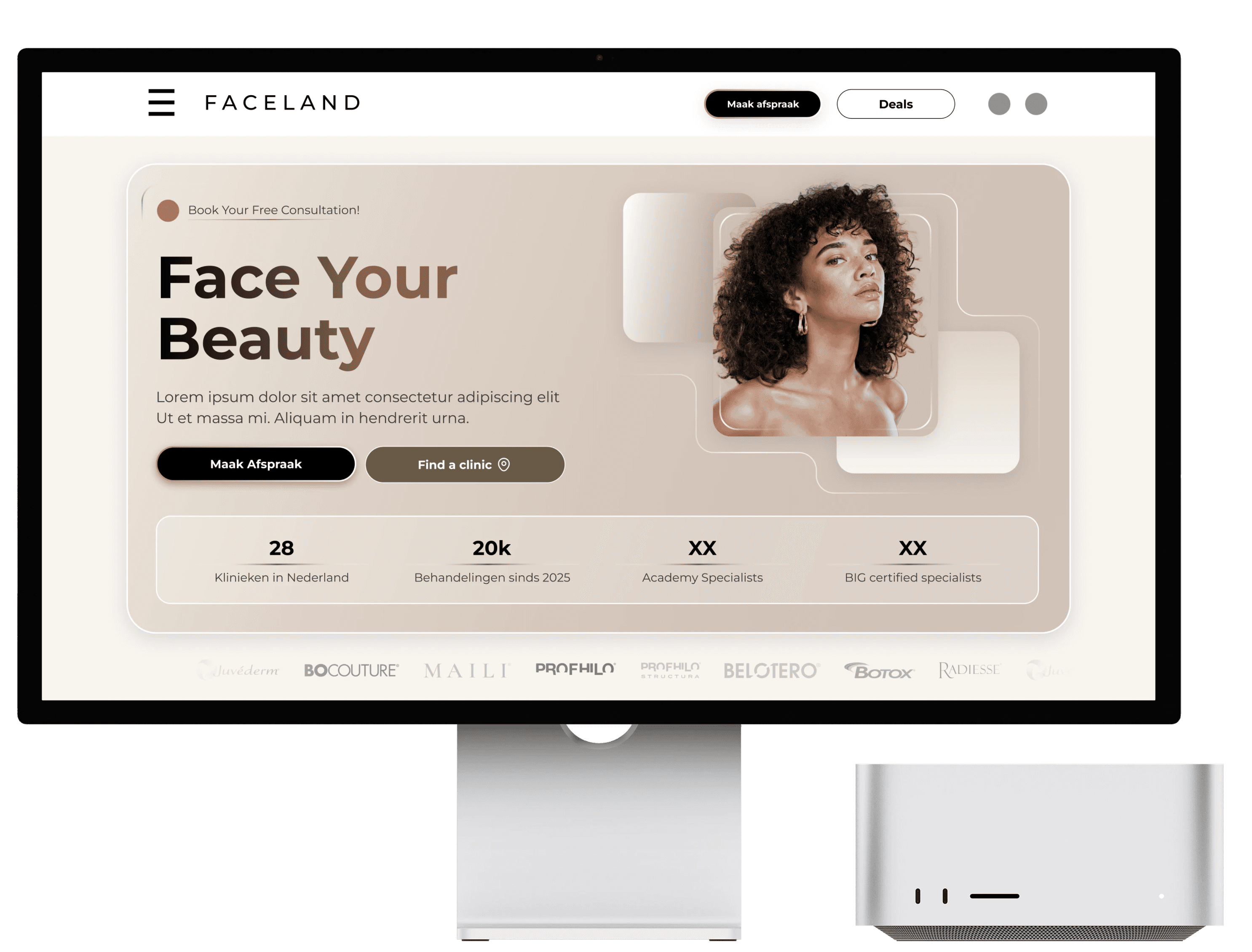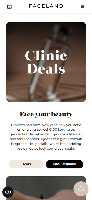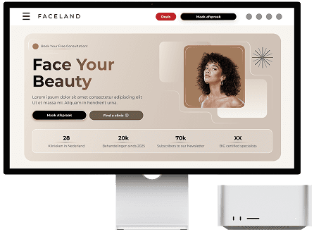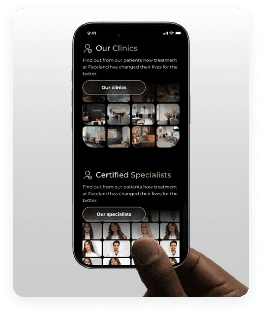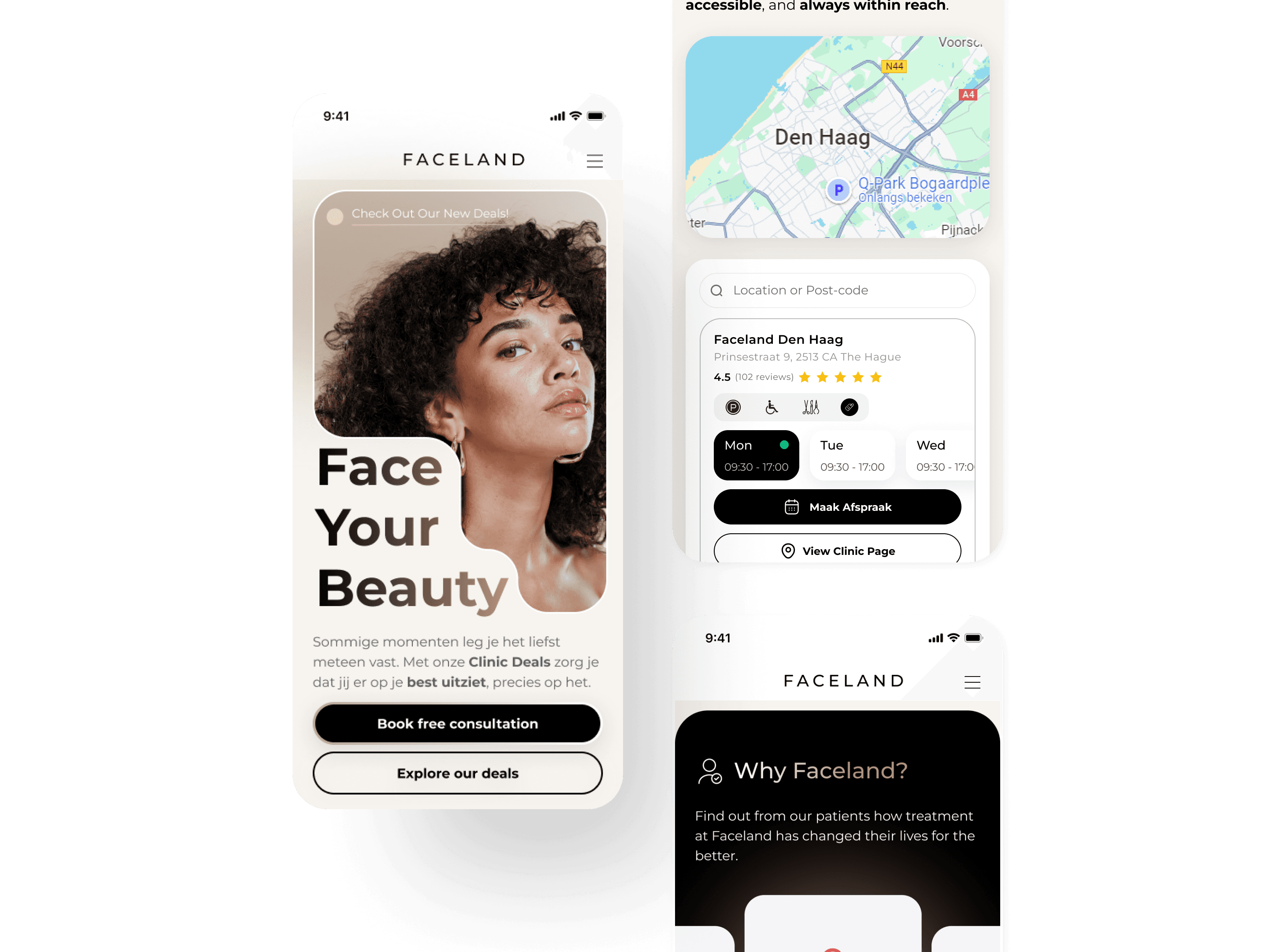The new hero uses high-end, professional photography that balances the clinical excellence of Faceland with a sense of relaxation and beauty. This shifts the tone from a "transactional" service to an "aspirational" experience.