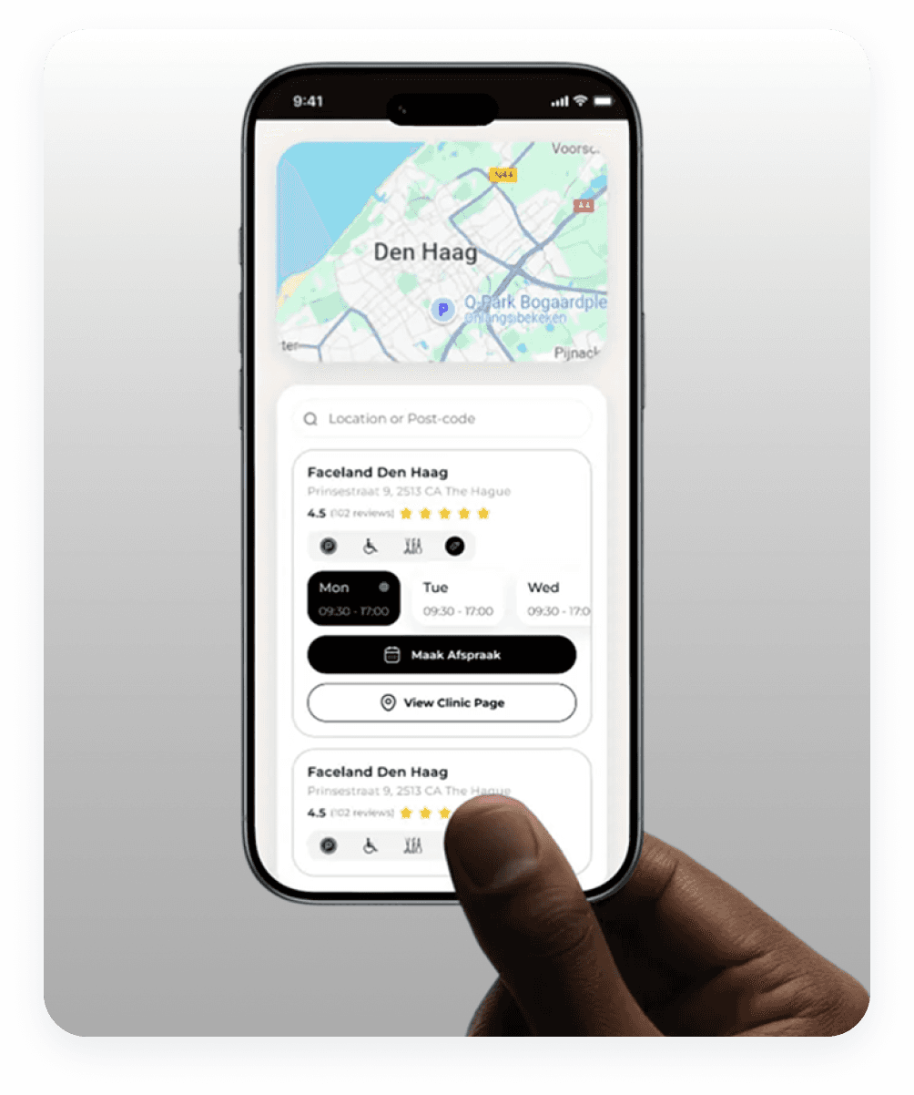 Users can now quickly locate any of the 60+ clinics across five countries. The new map integrates directly with Google My Business which means that opening hours and content update automatically. Tapping on a clinic lets users open directions instantly in Google Maps which creates a seamless journey from discovery to action.