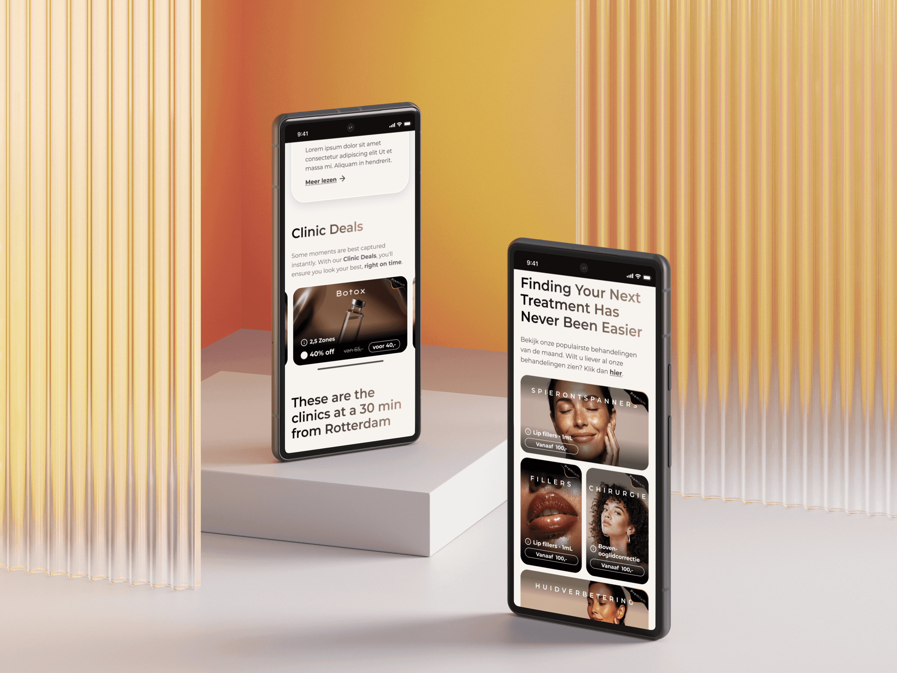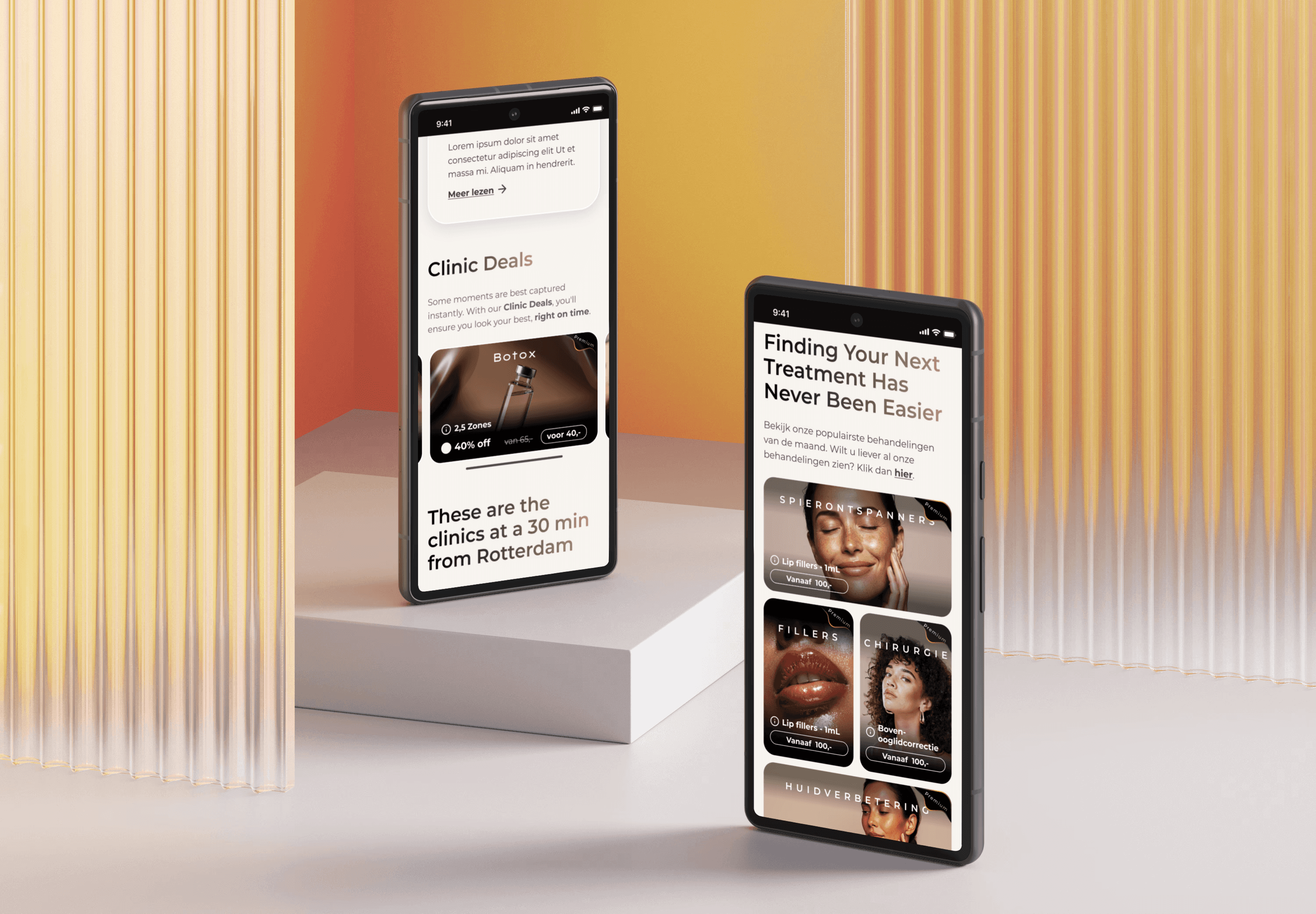 I shifted the visual language from transactional to aspirational, using high-end imagery and a clear "A-brand" ticker. This creates a more immersive brand experience, encouraging users to explore treatments rather than simply skimming for deals.