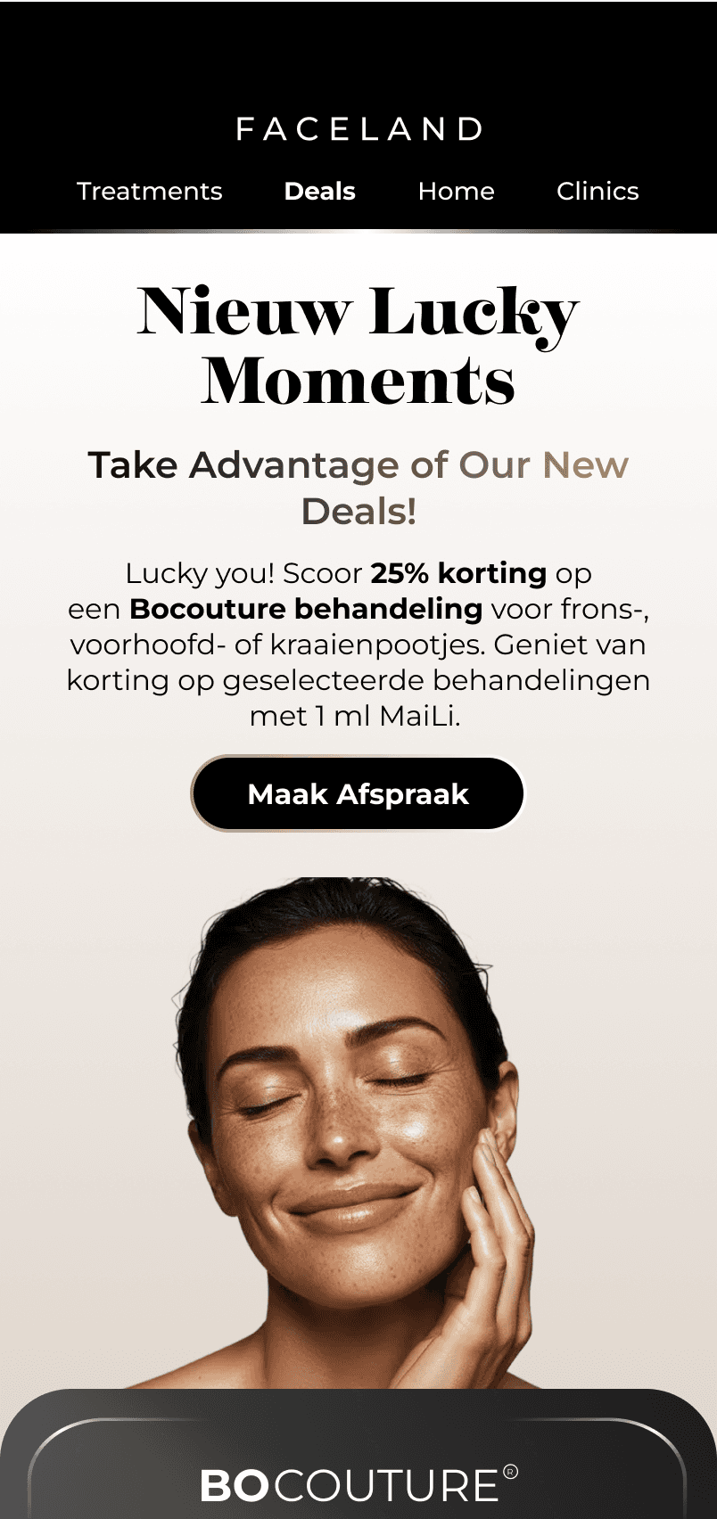 To ensure a coherent brand experience, I moved beyond the website to rebuild our social media ads and newsletters. This ensured that regardless of where the customer interacts with Faceland, they encounter a consistent, luxurious "First Impression."